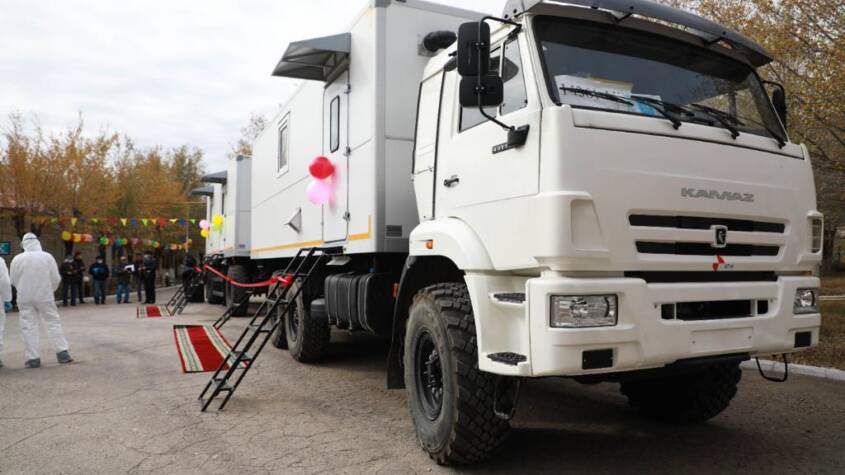 Жылжымалы медициналық көлік Денсаулық сақтау министрлігі тапсырысы негізінде дайындалып, зертхана қажеттілігі бар өңірлерге берілуде.