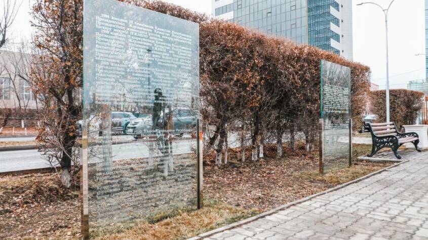 Ол жерге тәуелсіздік алған күннен бастап еліміздің мемлекеттік қызметінің 3 даму кезеңін қамтыған 11 шыны көрме стенді орнатылған.